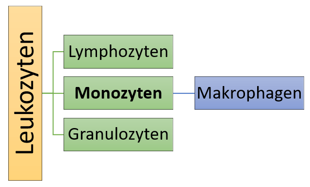 Sie entwickeln sich zu Makrophagen, die zum einen phagozytierende Eigenschaften haben und zum anderen über die Fähigkeit der Antigenpräsentation eine wichtige Aufgabe der spezifischen Immunabwehr übernehmen.