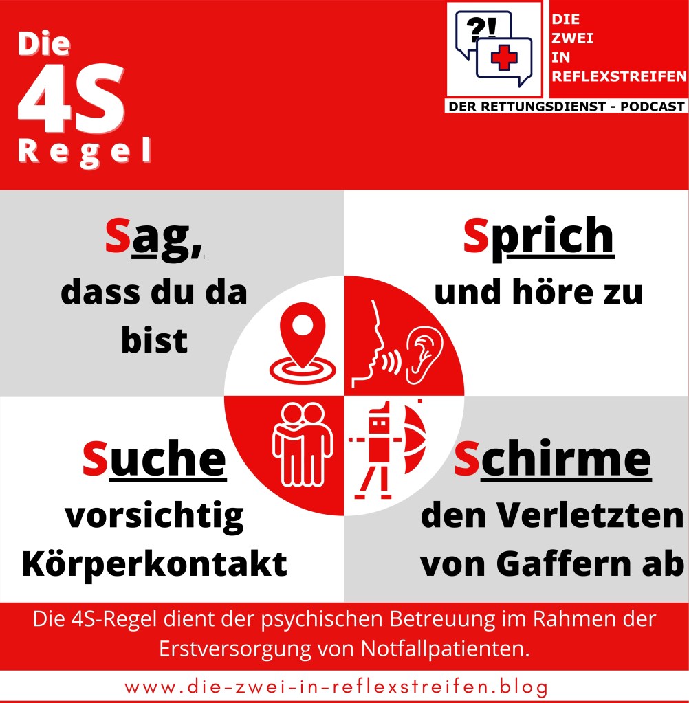 Dieses SSSS- Schema soll aber nicht mit der 4S- Regel verwechselt werden. Dies dient nämlich der Ersten Hilfe im Rahmen der psychischen Betreuung von Notfallpatienten.