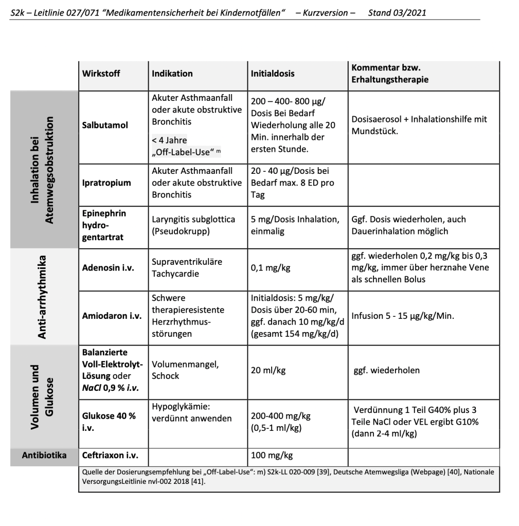 Ein Kommentar zu “S2k Leitlinie Medikamentensicherheit bei Kindernotfällen”