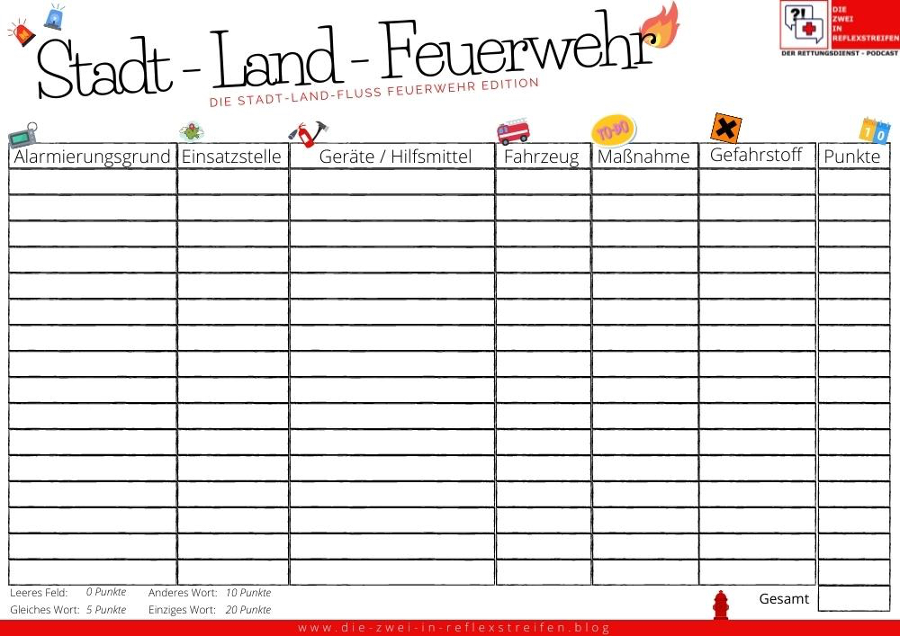 Die Stadt-Land-Fluß Feuerwehr Edition. Nach Stadt-Land-Rettungsdienst haben hier für euch die Feuerwehrversion des beliebten Spiels.