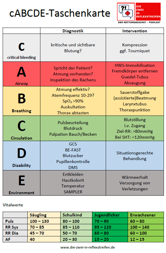 Nach unserer Folge zum cABCDE kam immer mal wieder die Frage nach einem kleinen Handout dazu. Dem haben wir uns mal angenommen, und haben für euch eine kleine Taschenkarte im DIN-A5 Format entworfen. So habt ihr die wichtigsten Fragestellungen und Maßnahmen noch mal auf einem Blick in der Jacken- oder Hosentasche dabei. Die Rückseite haben„cABCDE-Taschenkarte“ weiterlesen